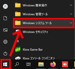 ウィンドウズボタンから「Windows システムツール」を探して開きます。