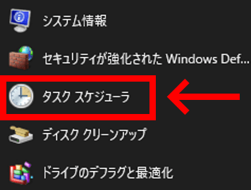 Windows システムツールの中からタスクスケジューラを探して起動させます。