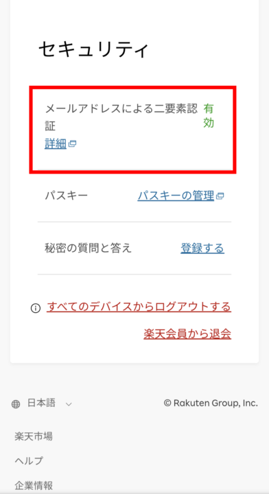 - 楽天ID(楽天アカウント)のメールによる二要素認証は有効にできる可能性が高いのでmyRakutenにログインして有効化が可能であれば必ず有効化する