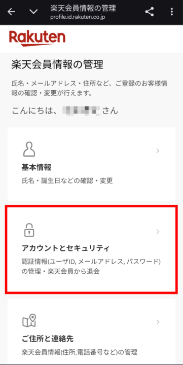 アカウントにログインする必要があるので https://my.rakuten.co.jp/ を開いてログイン。