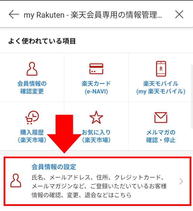 my Rakutenの画面が開いたら「会員情報の設定」をタップ