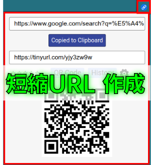 “Copied to Clipboard”ボタンをクリックすると変換後のURLを簡単にコピーできます。